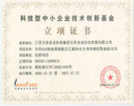 The company's polypropylene carbonate technology has passed the scientific and technological achievement appraisal organized by the State Environmental Protection Administration. An expert group led by academicians of the Chinese Academy of Sciences Cheng Rongshi and academicians of the Chinese Academy of Engineering Zhang Yi agreed that the technology has reached the international leading level. The company's projects have successively won the second prize of Guangdong Science and Technology Progress Award and the third prize of National Environmental Protection Award. The company's products have won the titles of National Key New Products and Jiangsu High-tech Products. The project has been included in the National Science and Technology Support Plan, the National Major Resource Utilization Demonstration, the Special Action Fund of the Chinese Academy of Sciences Technological Innovation Scale Industrialization, the Ministry of Finance Packaging High-tech R&D Fund, the Jiangsu Province Major Scientific and Technological Achievement Transformation Fund, the Innovation Fund, the Torch Program, etc. .